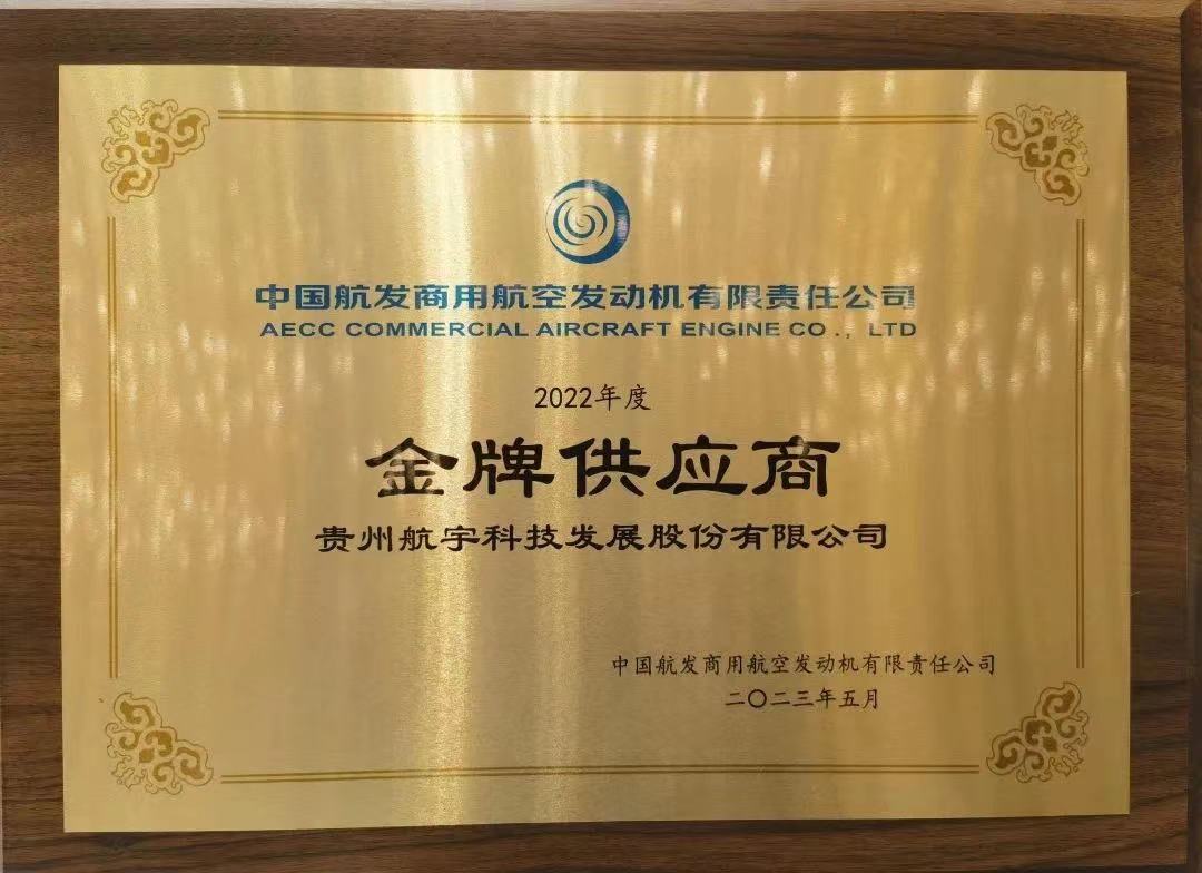 航宇科技榮獲中國(guó)航發(fā)商發(fā)“2022年度金牌供應(yīng)商”榮譽(yù)稱號(hào)